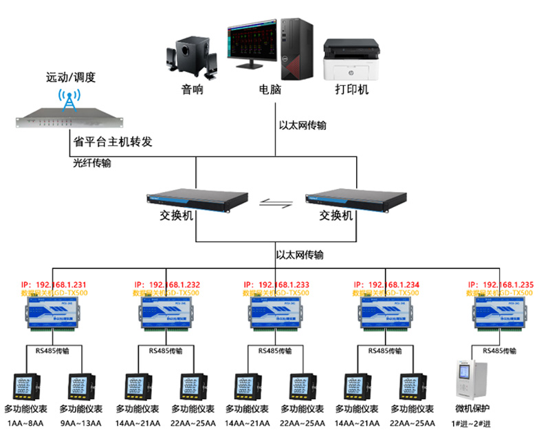 其中,中控室多機系統的網絡結構圖如下: