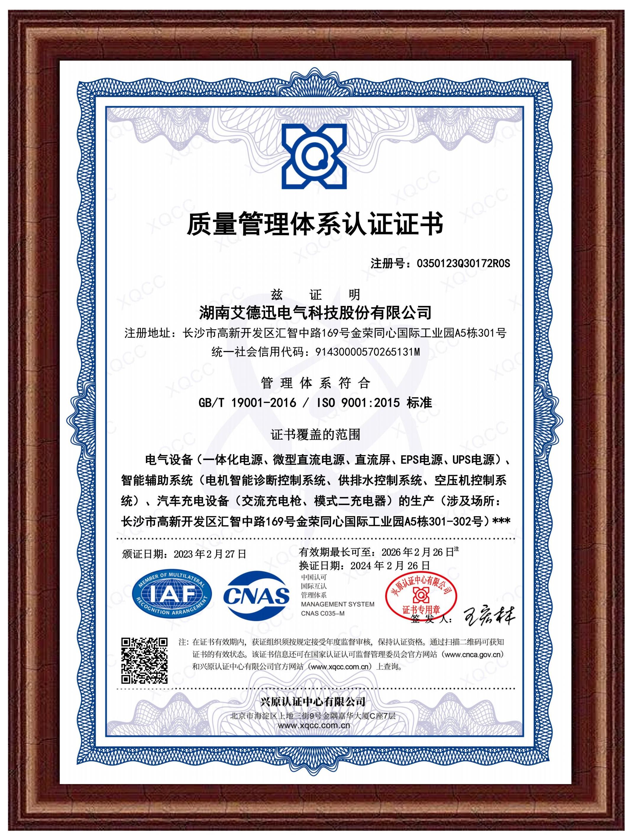 質量管理體系認證證書